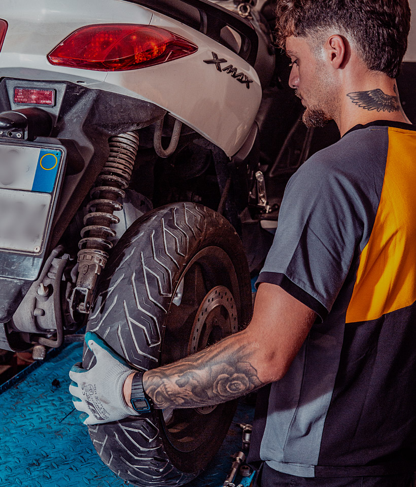Vendiamo e sostituiamo pneumatici di moto e scooter delle migliori marche, con montaggio ed equilibratura.